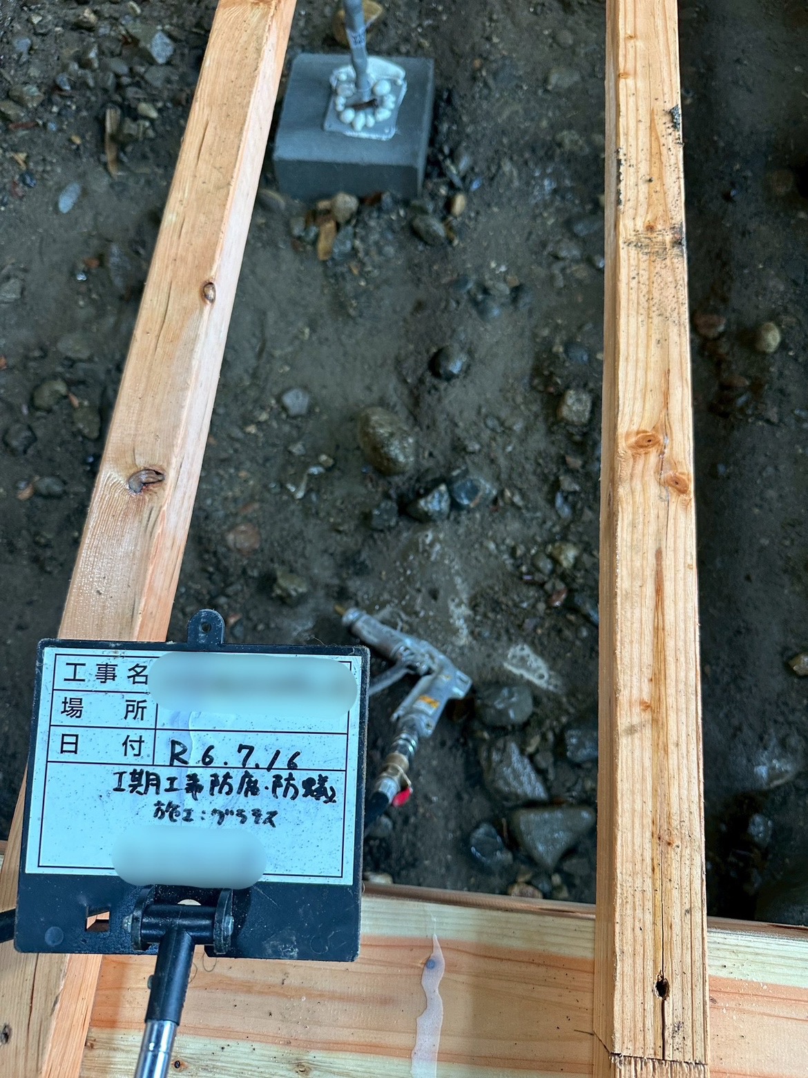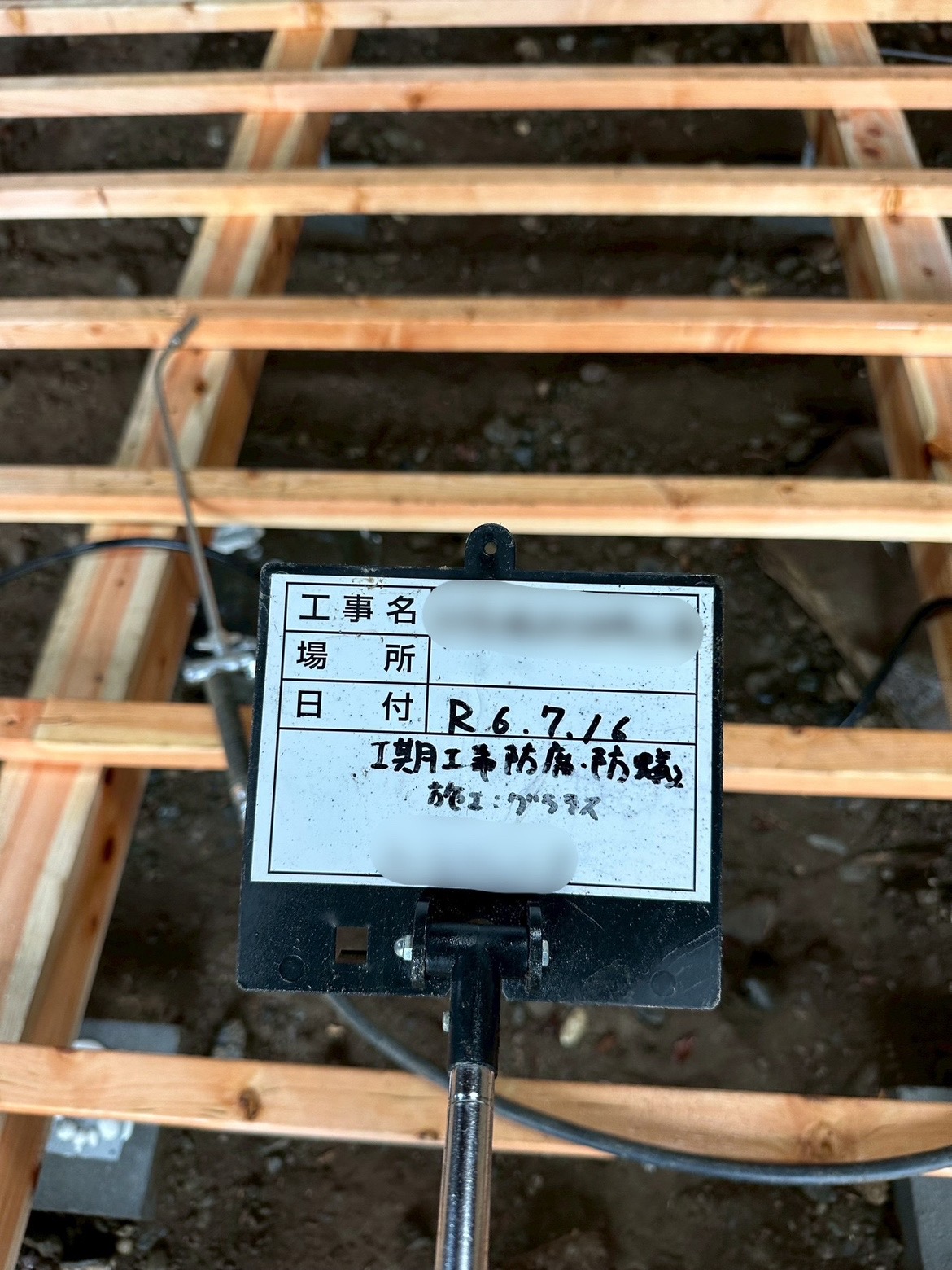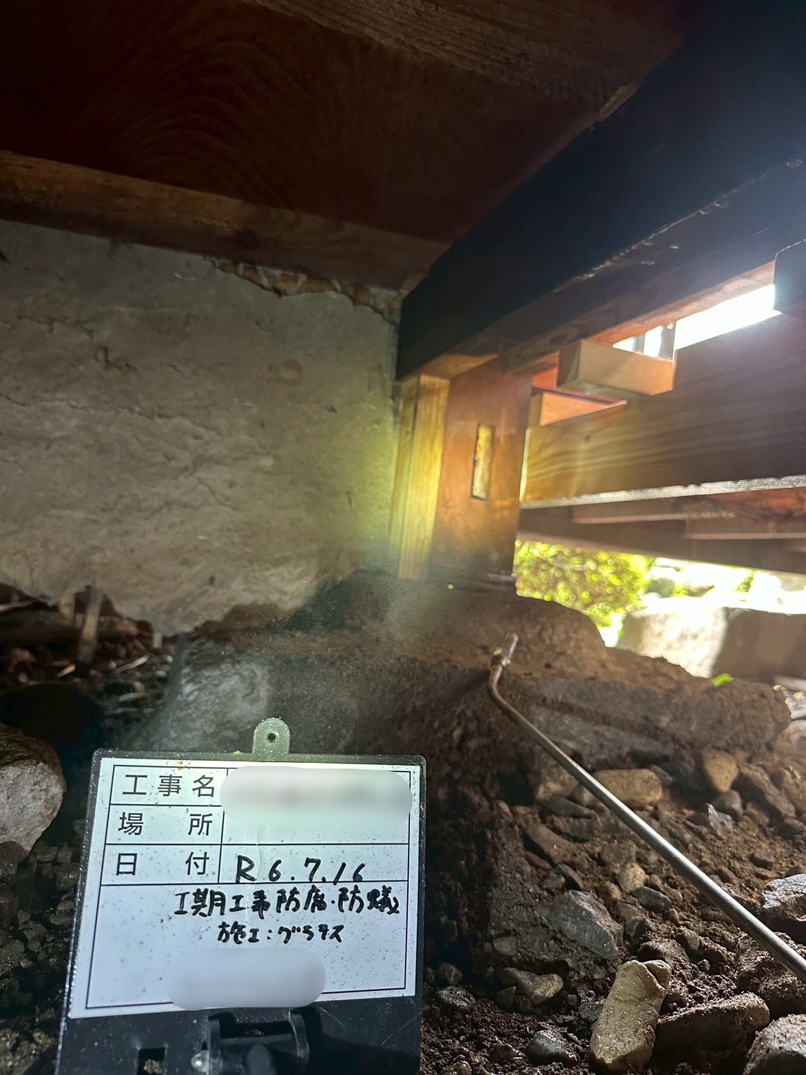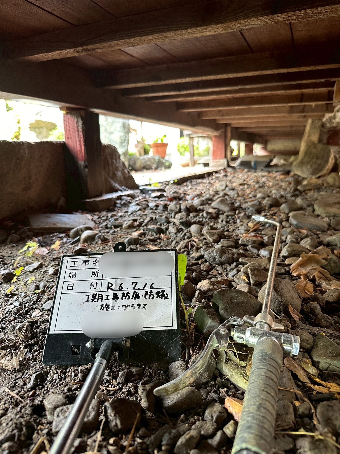 縁側ももちろん、木材・土壌へ薬剤散布です😊